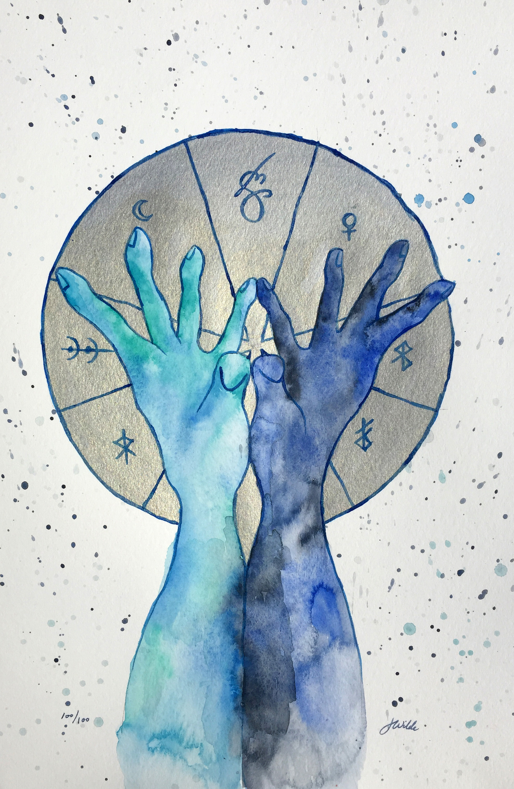 Watercolor, ink, and metallic ink, 12-in by 18-in.